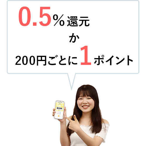 - 店舗の商品利用で200円につき1ポイントが付与され、電子マネーとしてご利用いただけます。キャンペーンでのポイント付与もあります。