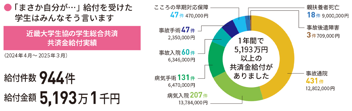近畿大学生協での給付件数は944件 5,193万円(2024年4月~2025年3月)でした!